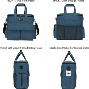 Dog Travel Bag, Weekend Pet Travel Set for Dog and Cat, Airline Approved Tote Organizer with Multi-Function Pockets, 2 Food Storage Containers, 2 Collapsible Bowls, 1 Feeding Mat (Blue)